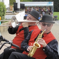 Dixieland Fietsorkest brengt u al fietsend vrolijk en swingende dixielandmuziek. Achterop de fiets is een megafoon