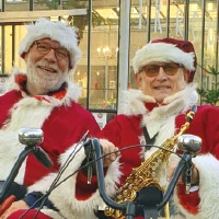 Het Kerstmannen Fietsorkest brengt u vrolijk en swingende dixieland en kerstmuziek.